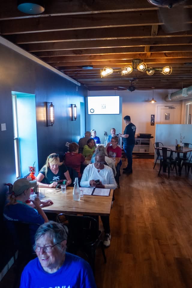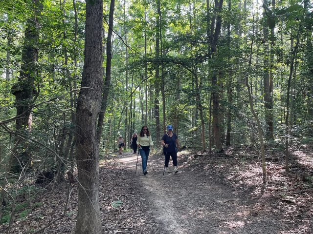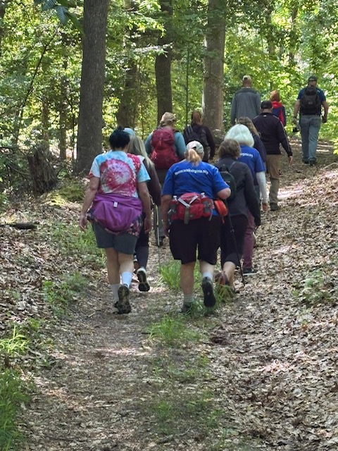 Our club had a great walk on the Dahlgren Railroad Heritage Trail in King George, VA, on Saturday, September 20th, 2025. The shady trail is well-kept and mostly level, with zero hills. Most of us walked 5K, but several folks walked further and did 9-10K. Afterwards, we had a delicious lunch at Vinny’s Italian Grill & Pizzaria in King George. A good time!