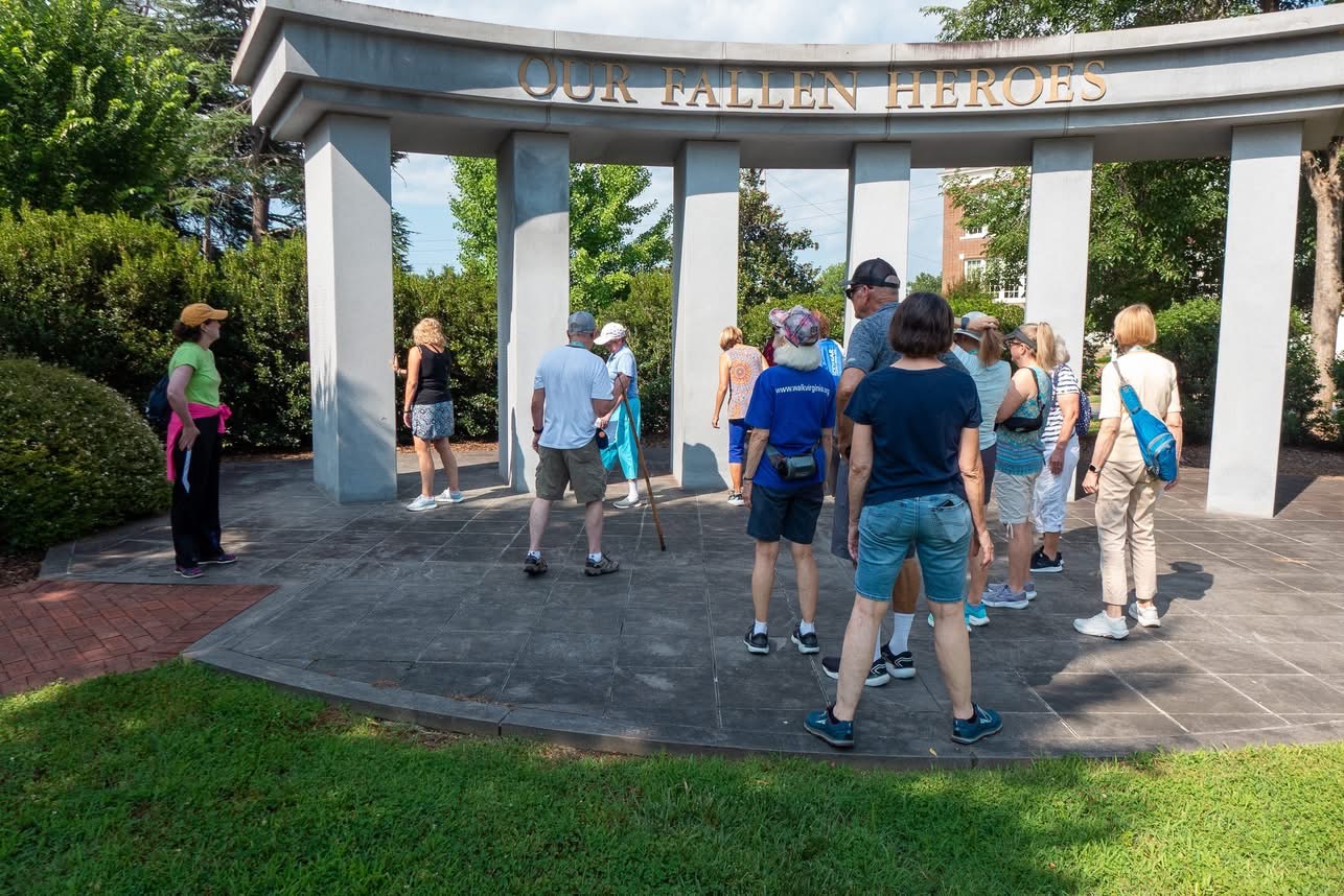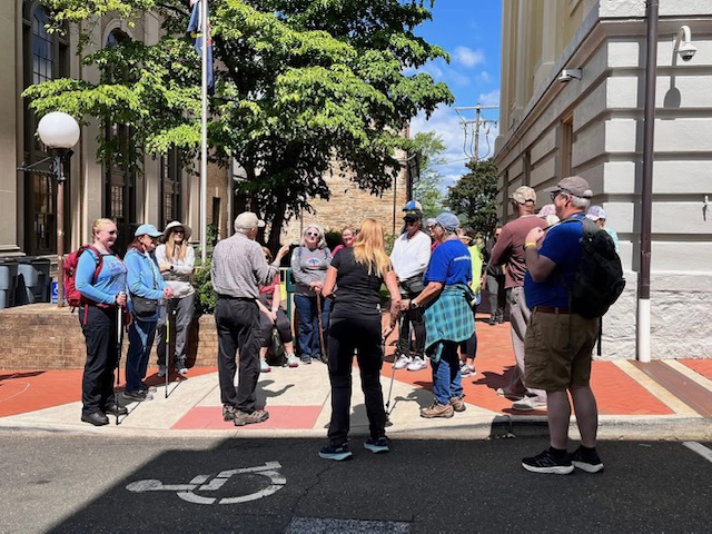 The FWC enjoyed a wonderful walk in historic downtown Warrenton, VA, on Saturday, May 24th, 2025, with about 20 enthusiastic walkers. Our President, Don, who is also an interpreter with the Friends of Wilderness Battlefield, led the walk and filled us in on some of the town’s history and buildings we were seeing. We stopped in the cemetery where the grave of Colonel John Singleton Mosby is. He was a Confederate Cavalry Commander during the Civil War – also known as the “Gray Ghost.” We also stopped in front of his house, currently known as the Brentmoor-Spillman House. The house was completed in 1861 for Fauquier County Judge Edward M. Spillman. We also learned about Govenor William “Extra Billy” Smith from Fauquier County, governor of VA from 1846-1949, and 1864-1865. Afterwards we had a delicious meal at the Cast Iron Craft House. Fun for all!