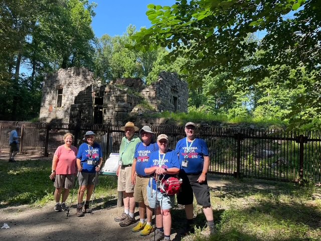 On Saturday, June 21st, 2025, about 20 walkers participated in a 5K at the Midlothian Mines Park, in Chesterfield County, VA, hosted by the Central Virgina Walking Club. The 44-acre preserve has ruins of coal mines of one of the first major industrial sites in the U.S. and pays tribute to those who innovated and sacrificed in the beginning of the Industrial Revolution. We walked along lovely, wooded trails, past a lake and mining ruins, and through a beautiful subdivision. Afterwards we had a delicious lunch at The Urban Farmhouse Market & Cafe.