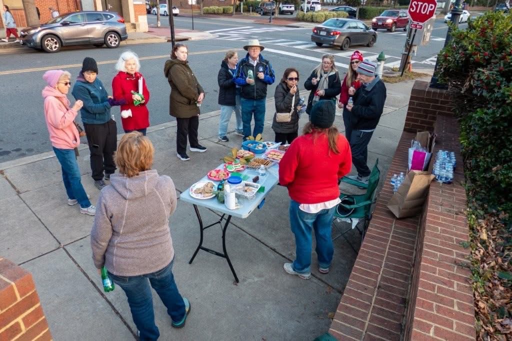 Our club celebrated the beautiful holiday decorations and lights with a Traditional Walk in downtown Fredericksburg, VA, on Saturday, December 20th. We are so grateful for the wonderful support from the owner and staff at Anita’s Cafe, where our Start and Finish Point was. They always us make us feel so welcome! The weather cooperated and walkers enjoyed delicious cookies at the checkpoint by Hurkamp Park. It was also great to visit with walkers from other clubs, and we met some new friends as well!