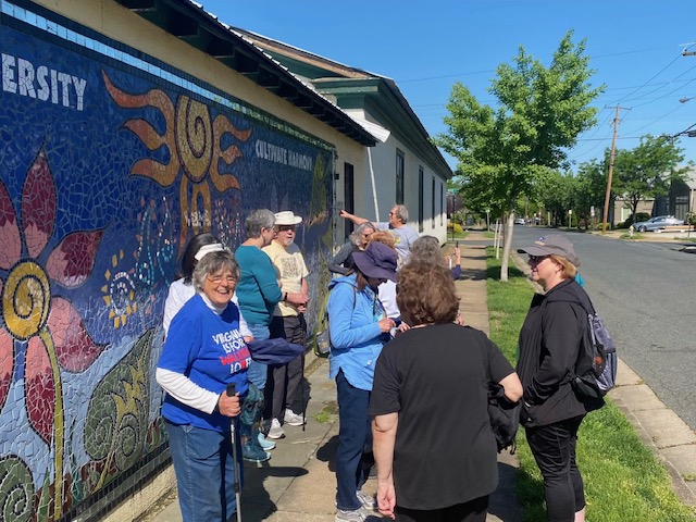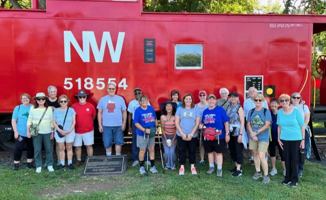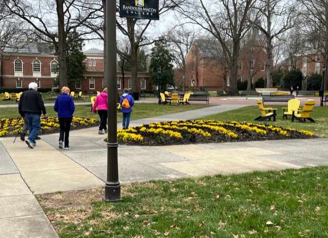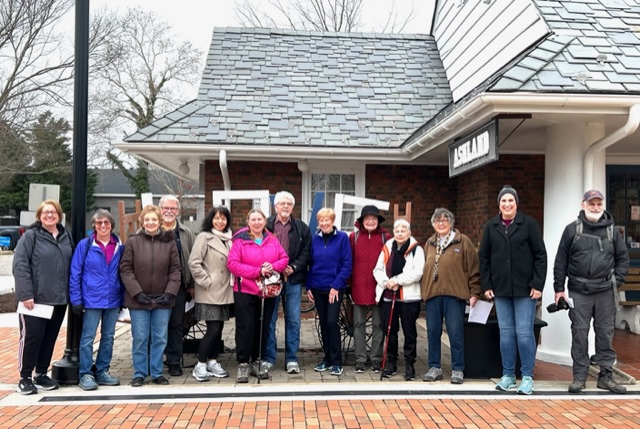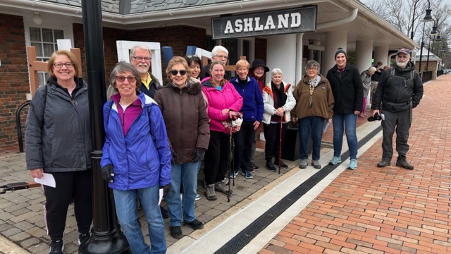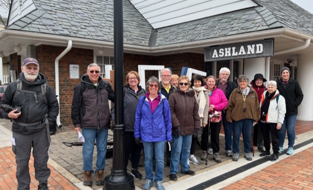Sixteen walkers travelled to Ashland, VA to participate in one of our Year-Round-Event walks – a very nice turnout! Ashland is referred to as “the center of the universe” by locals, because it is located right in the middle of Hanover County. A very historic town, dating back to the 1840s, developed by the railroad as a mineral springs resort. We started at the visitor’s center/railroad station and walked a 5K around neighborhoods with beautiful houses, and through the Randolph-Macon college campus. A few walkers continued on to do the 10K. Afterwards, had a great lunch at the Iron Horse restaurant with good food and conversation!
