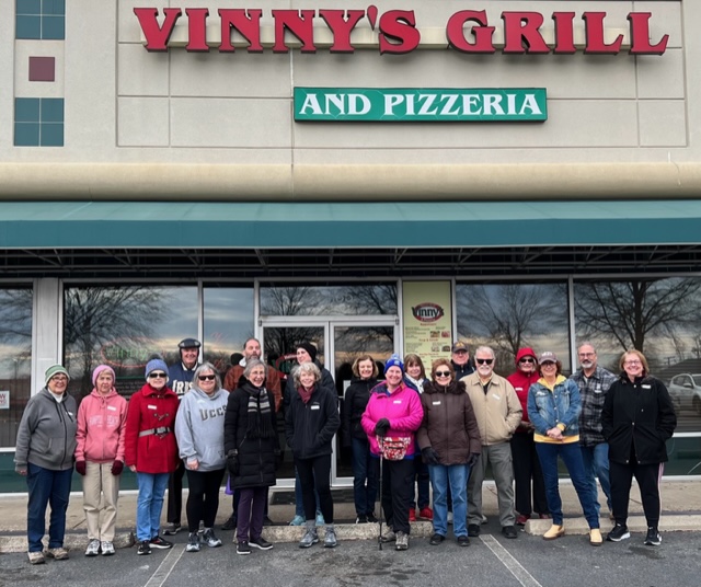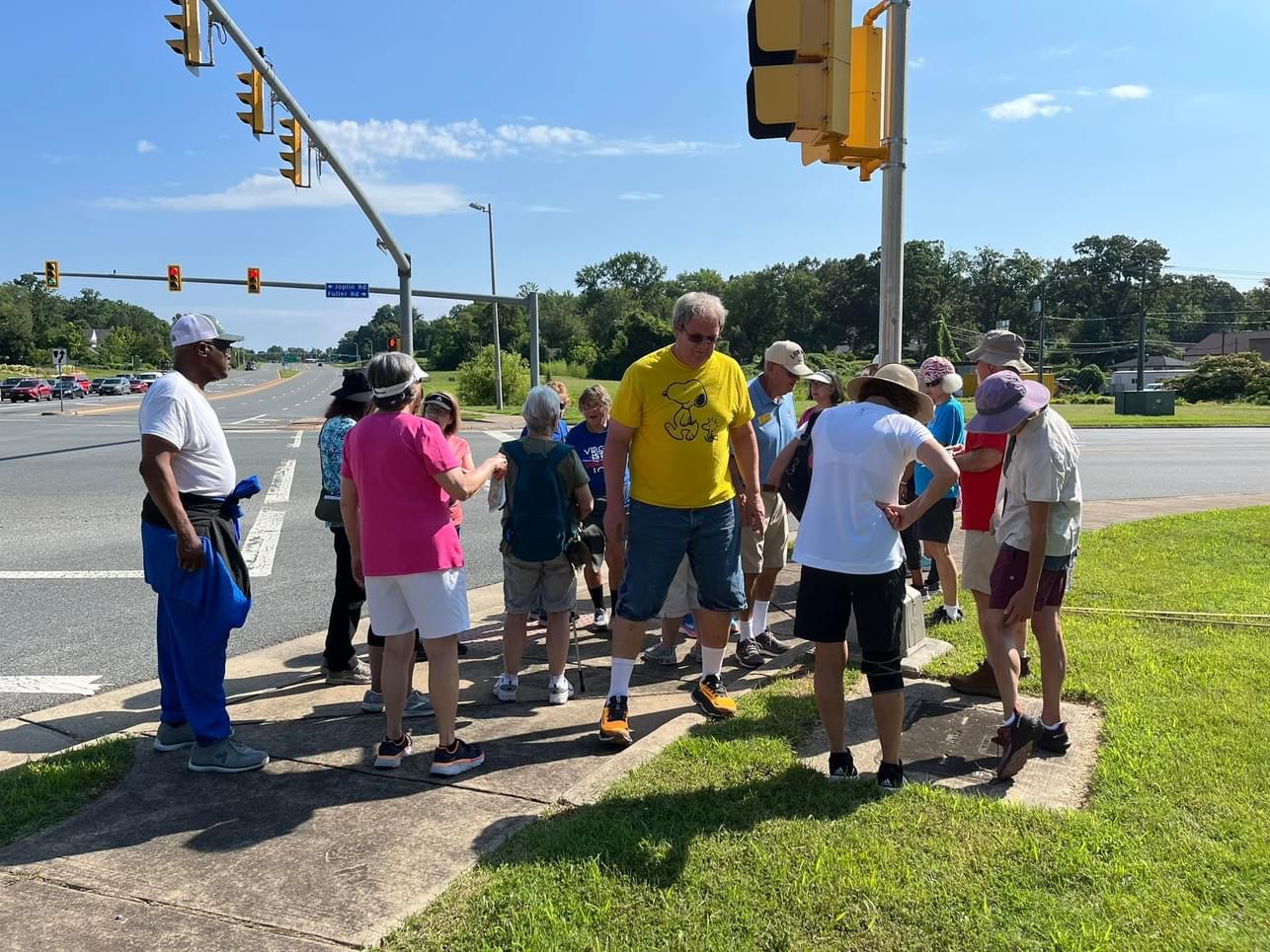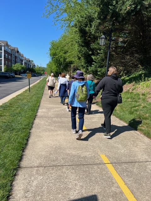 We had a great turnout of twenty people on this neighborhood walk. We met at Vinny’s Pizzaria off of Route 17 and Plantation Dr. in south Stafford and walked more than 3.5 miles on a trail and some sidewalks around the England Run neighborhood and surrounding areas. Afterwards many of us had lunch at Vinny’s and enjoyed good conversation and getting to know each other more – so happy to have new walkers join us!