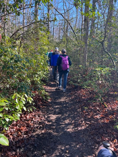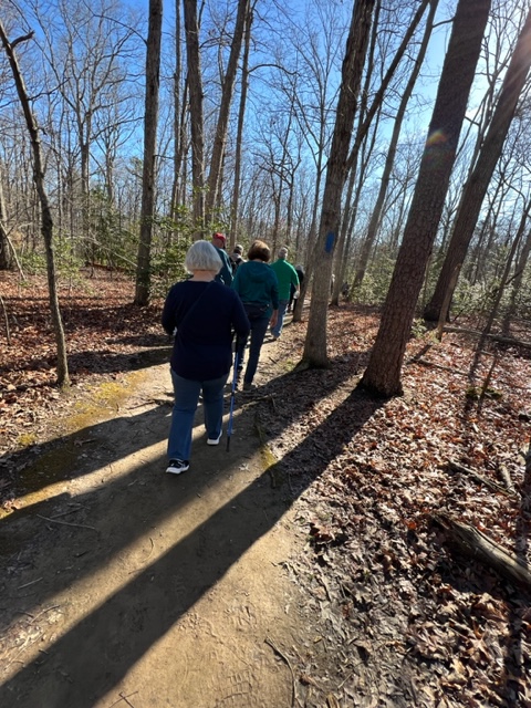 Sixteen walkers enjoyed a perfect day walking 5.5 miles on the Crow’s Nest Point Trail. This is our club’s new Seasonal Walk at the Crow’s Nest Natural Area Preserve in Stafford County. We were happy to welcome three new members! Afterwards, we enjoyed a delicious lunch at El Viejon Mexican Grill.