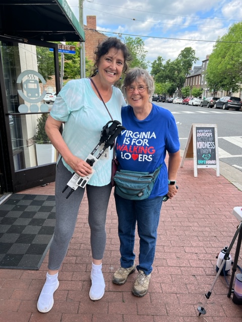 We had a great day! Sixty-seven walkers took part in our club’s “Spring into History” one-day, traditional event. Walkers had perfect weather to walk either 7K or 12K around beautiful, historic Fredericksburg and Alum Spring Park. Sixteen of us had a good time walking together in the group walk. And we had a very happy winner of the REI hiking poles we raffled off! Many thanks to the volunteers and all who helped make this event happen – especially to Kay Shoemaker who planned these awesome walks – and to all the folks who came out to walk with us and made this event a great success. Finally, we’re so grateful to the Italian Station for once again letting us set up our start/finish tables at their wonderful establishment.
