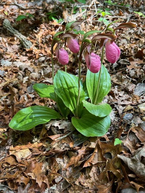 Twenty-two walkers had a wonderful morning walk on the Dalgren Railroad Heritage Trail in King George, VA. Starting around 9:30 a.m., some of us went 5K out and back; others continued on a little further for a total of about 8K. We went off trail .5 miles to look at some nice cabins owned by a brother of one our club members who walked with us. Walking there is a great way to get out in nature, and we highly recommend it. A highlight was seeing wild Lady Slipper Orchids along the way.