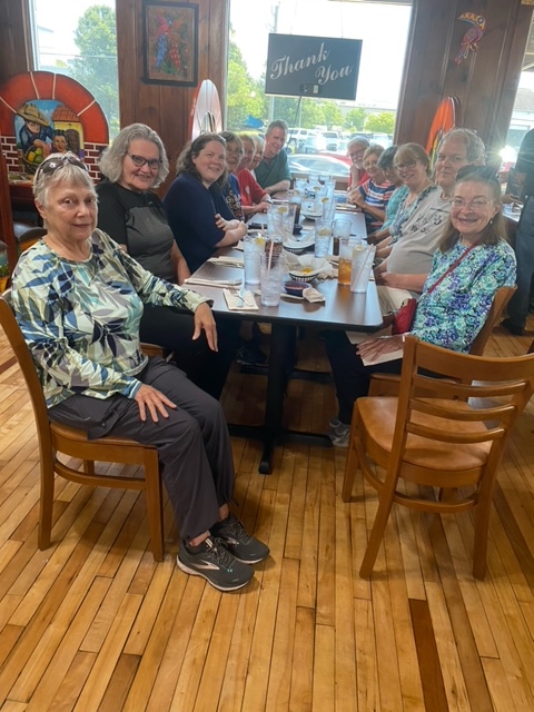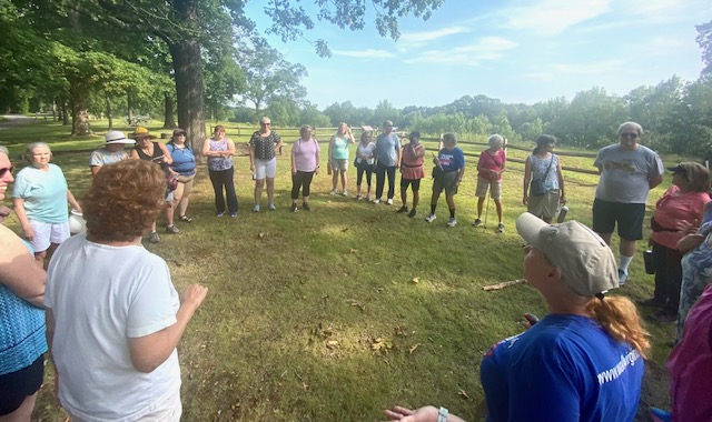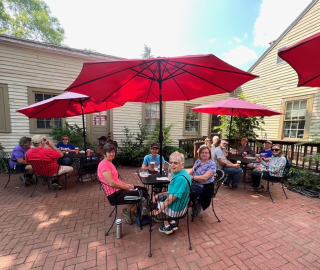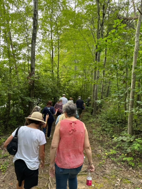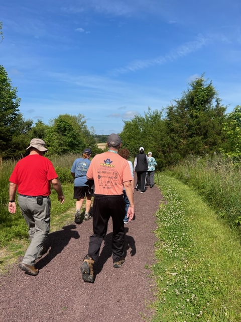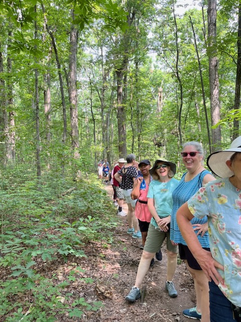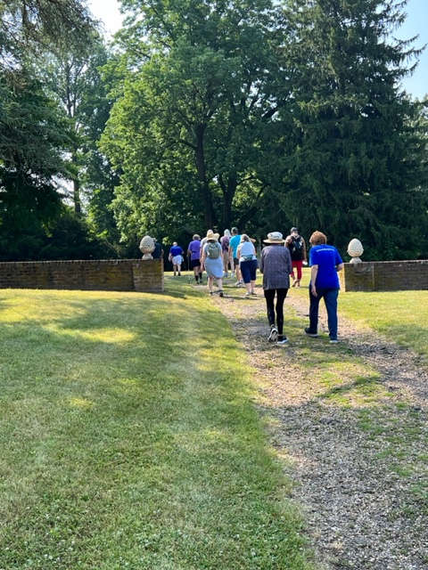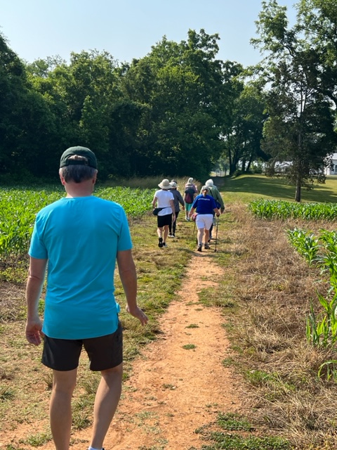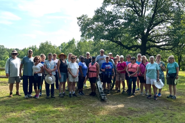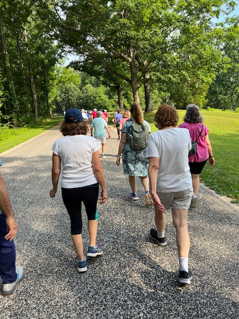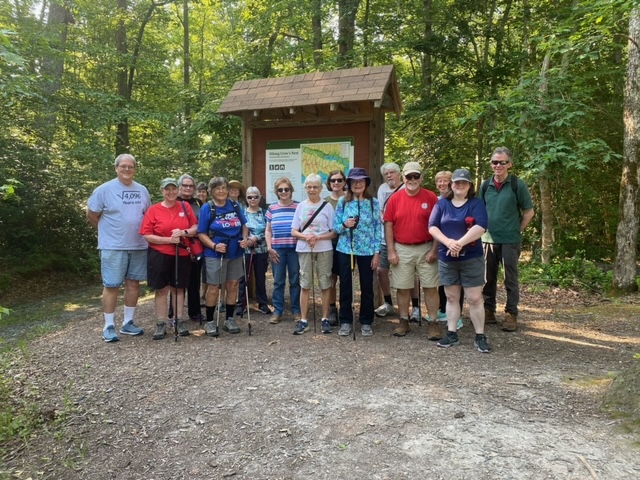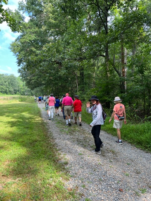 Twenty-seven walkers braved the heat and humidity and enjoyed a delightful 5-mile walk on the Fredericksburg Battlefield. We met at Prospect Hill on Lee Dr., and walked on the paved road to Lansdowne Rd. Then, we took a trail through the woods back to Prospect Hill. It was a beautiful walk with plenty of shade, although we were grateful for the water we brought. Afterwards, eighteen folks enjoyed a delicious meal at the Colonial Tavern Restuarant.