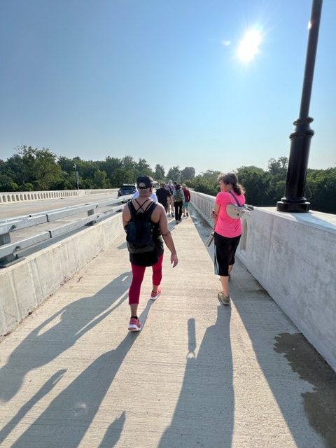 We had a great turnout of 28 people for this walk! After meeting in downtown Fredericksburg, we crossed the Chatham Bridge onto the Pratt Park Trail. We then continued onto a short path to historic Chatham Manor – where club members Alan Zirkle and Beth Stenstrom, who are also local historians, spoke about Chatham’s history. After spending time there, Beth led us down a secret path to River Rd., and back across the bridge. Finally, some of us enjoyed a nice brunch at Eileen’s Bakery. A wonderful walk!