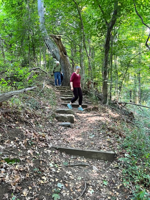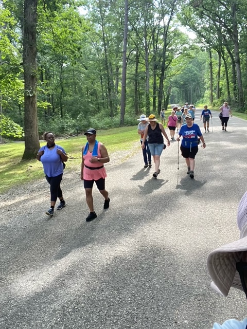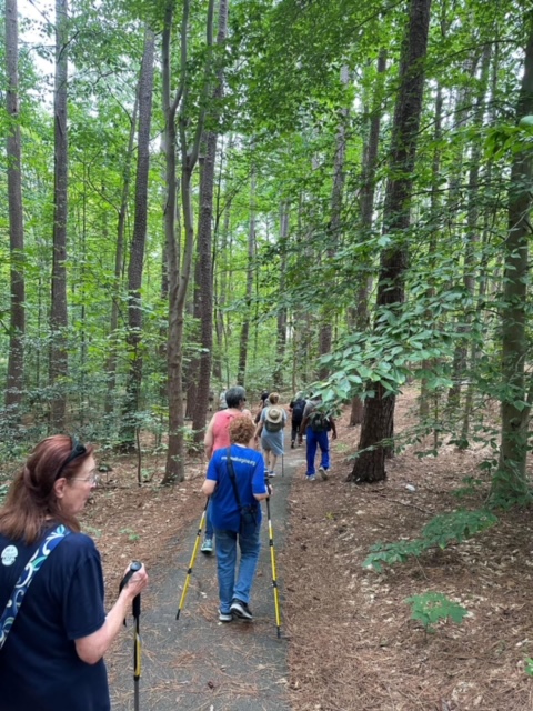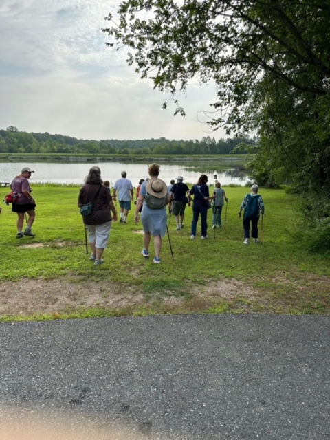 Our club enjoyed another delightful hike this morning on the trails at Curtis Memorial Park in Stafford County. Twenty-one folks went 5K, walking for a short distance on a road, then on a trail that walked by the lake. Following the hike, some of us made our way to the Paradise Diner on Rt. 17 for a good lunch and great conversation.