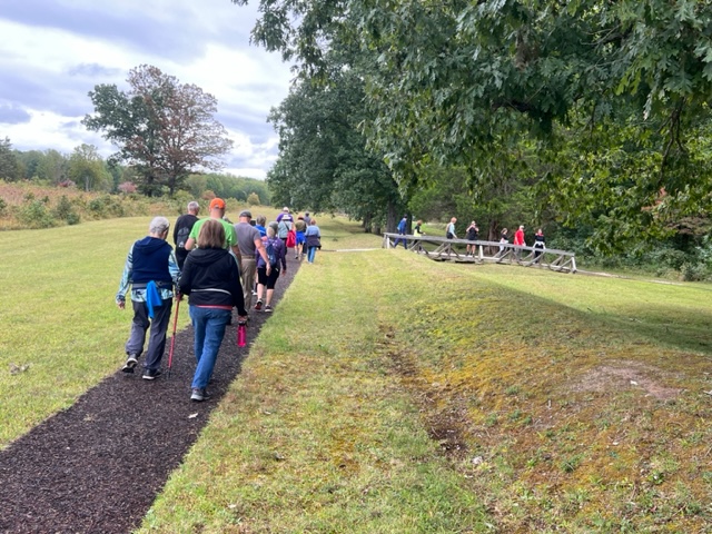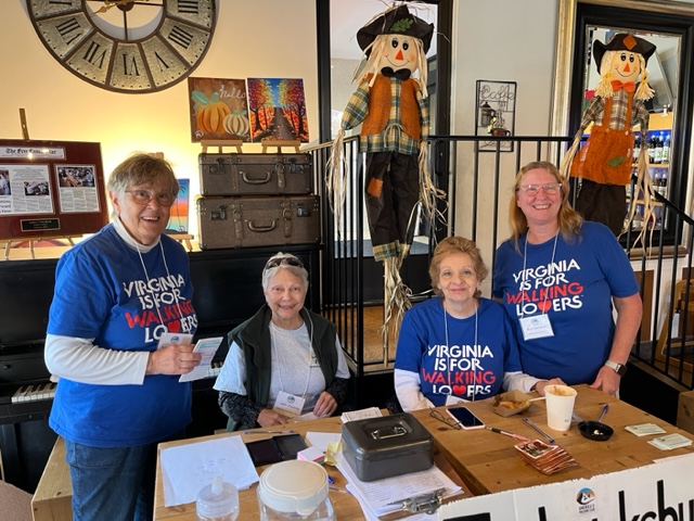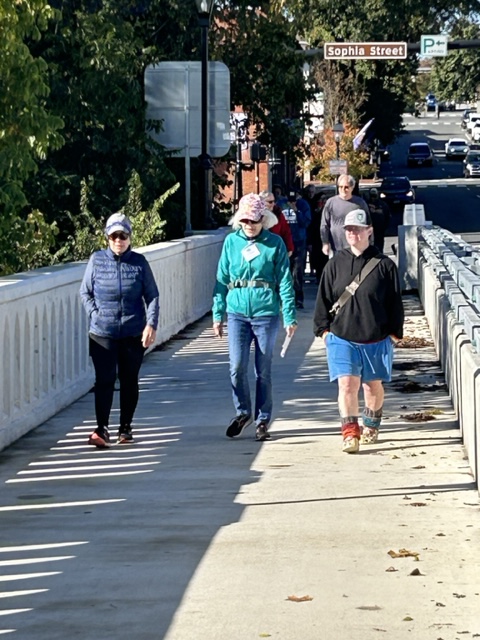 FWC’s traditional Fredericksburg Fall Walk turned out to be a wonderful event, with 53 walkers participating throughout the day. It was a beautiful, sunny, and breezy morning, with about 25 people joining in the group walk that began at 10:00. We all started out together from the Italian Station on Caroline St., continuing to walk across the Chatham Bridge onto the Pratt Park Trail – where we paused at the checkpoint. There the group split with most walkers going 7K to walk on the grounds of historic Chatham Manor, and then back to the start point. A smaller group walked 12K – first to the grounds of Belmont, the 18th-century artist Gari Melcher’s historic home and studio – then back to Chatham, and finally back to the start point. Many thanks to all who joined us for this special event, and special thanks to the Italian Station for once again allowing us to use their awesome restaurant as our start and finish point.
