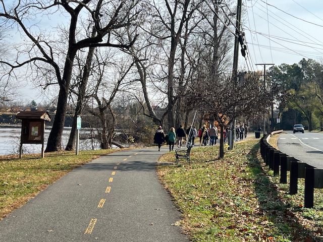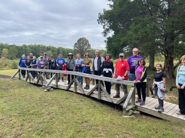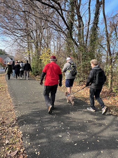 A great group of 30 people joined us on November 24th, 2023, for our Black Friday #OptOutside walk in Fredericksburg. Starting in Old Mill Park, we followed our club’s 5K River Rambles Year-Round-Event (YRE) route onto the Canal Path, taking a side jaunt through Cossey Park, and then continuing onto the path that connects to the Rappahannock River Heritage Trail. We were very happy to welcome many new walkers (and a cute dog!), and all of us enjoyed a beautiful morning outside!