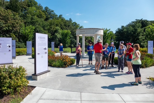Neither rain, nor sleet, nor fear of icy sidewalks deterred us from enjoying an inspiring walk on the grounds of the National Museum of the Marine Corps in Triangle, VA. About 25 walkers took part in this AVA-sanctioned, Year-Round-Event Walk sponsored by the Wood and Dale Wanderers Club. Tim and Celia Miner, the club’s President and Secretary/Trailmaster, joined us and gave us great historical background information along the way. The trails were clear for the most part, however we had to cut the walk a little short after reaching an area that had too much ice to walk on. It still proved to be a great walk being able to see the Chapel, and many monuments and statues along the way. The museum itself has incredible exhibits and displays, and many of us enjoyed a delicious lunch at the Tun Tavern on the second floor.