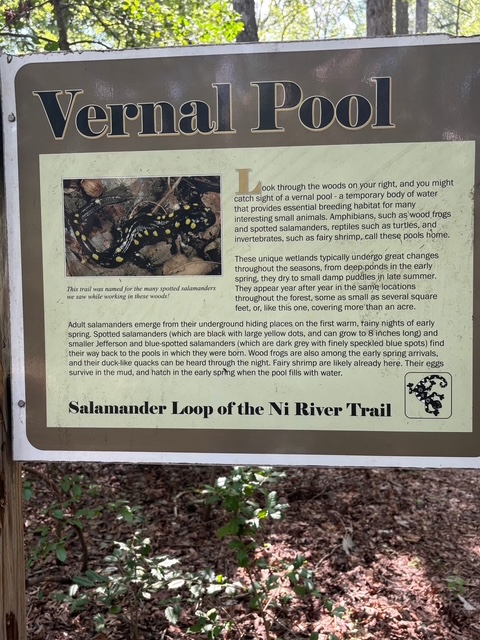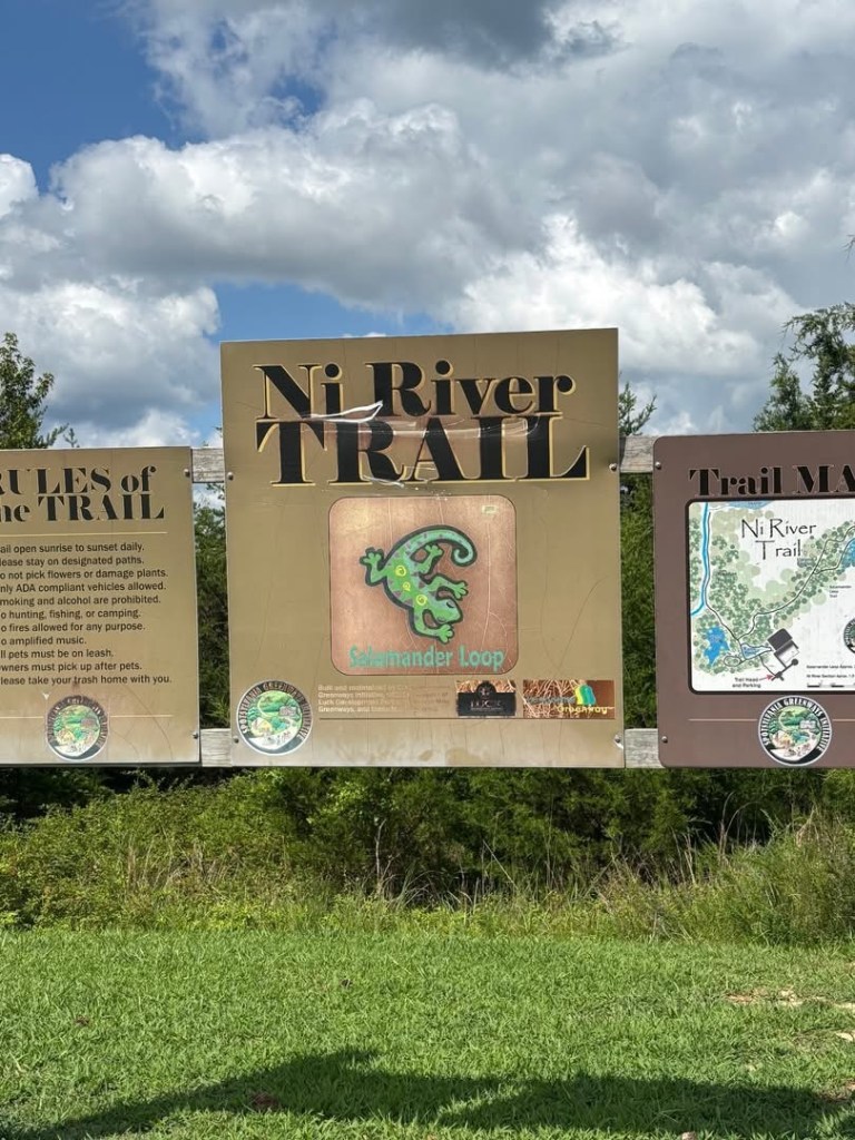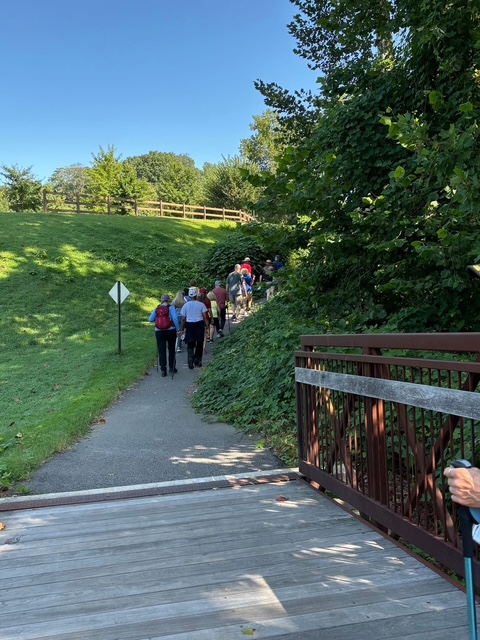 After having to cancel this walk the week before, our club had great weather on Saturday, August 2nd, 2025, to walk on the beautiful Ni River Trail in Fredericksburg, VA. Over 15 people showed up for the 5K walk on tree-covered trails with views of the Ni River and a pond near the trailhead. Afterwards, we had good food and conversation at the Legends Grille.