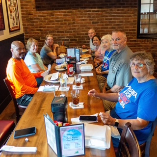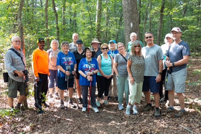 Our club had a great walk on the Dahlgren Railroad Heritage Trail in King George, VA, on Saturday, September 20th, 2025. The shady trail is well-kept and mostly level, with zero hills. Most of us walked 5K, but several folks walked further and did 9-10K. Afterwards, we had a delicious lunch at Vinny’s Italian Grill & Pizzaria in King George. A good time!