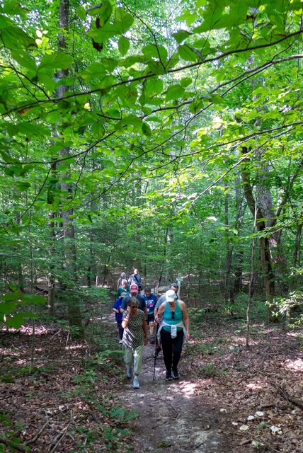 Despite a rainy forecast, just under 20 optimistic walkers met at North Anna Battlefield Park in Doswell, VA, for a 5K walk and picnic afterwards. Armed with rain jackets and shade canopy, spirits were high! Luckily, we only got a few sprinkles here and there – the weather was cooperative. Our club president, Don, who is also an interpreter with the Friends of Wilderness Battlefield, gave us a quick history lesson about the Civil War battle fought there in 1864, and about the Overland Campaign. We walked on the lovely, shady Gray Trail where several trees were down, but that didn’t hinder us! Afterwards, we returned to the picnic area and enjoyed socializing while eating delicious sandwiches, chips, and cookies. Nobody went home hungry!